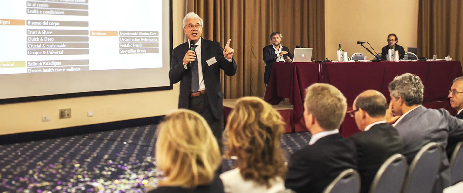 Tra i relatori vi sono stati Franco Falorni, che ha indagato in modo approfondito la sezione del bilancio e del calcolo del ritorno di capitale; l’Architetto Mario Trimarchi, direttore di Fragile, studio di corporate identity e design, che ha approfondito i significati della bellezza nel panorama della creatività contemporanea; il sociologo Francesco Morace, presidente di Future Concept Lab, istituto di ricerca internazionale per la consulenza strategica e l’innovazione, che ha presentato, con una grande ricchezza di esempi, il cambiamento paradigmatico in atto internazionalmente a livello sociale e i suoi riflessi sul mondo dei consumi.
